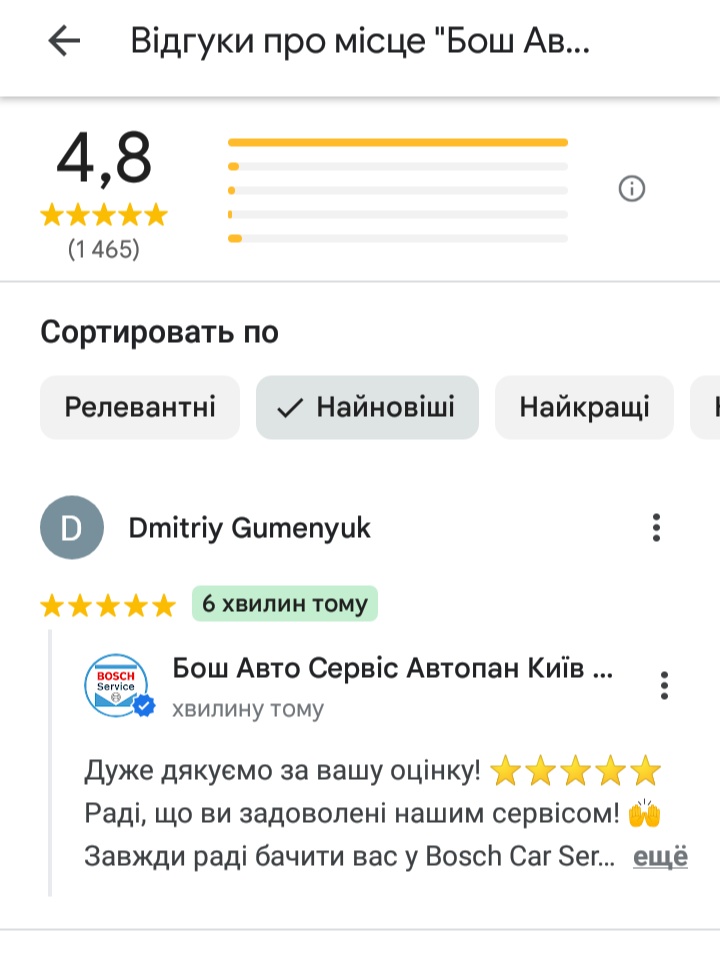 Добрий день. Хочу залишити гарний відгук про це СТО. Тому що допомогли мені вирішити мою проблему з авто,яку до цього не могли знайти на інших сервісах. Дякую майстру-приймальнику особливо. Звертайтесь, раджу